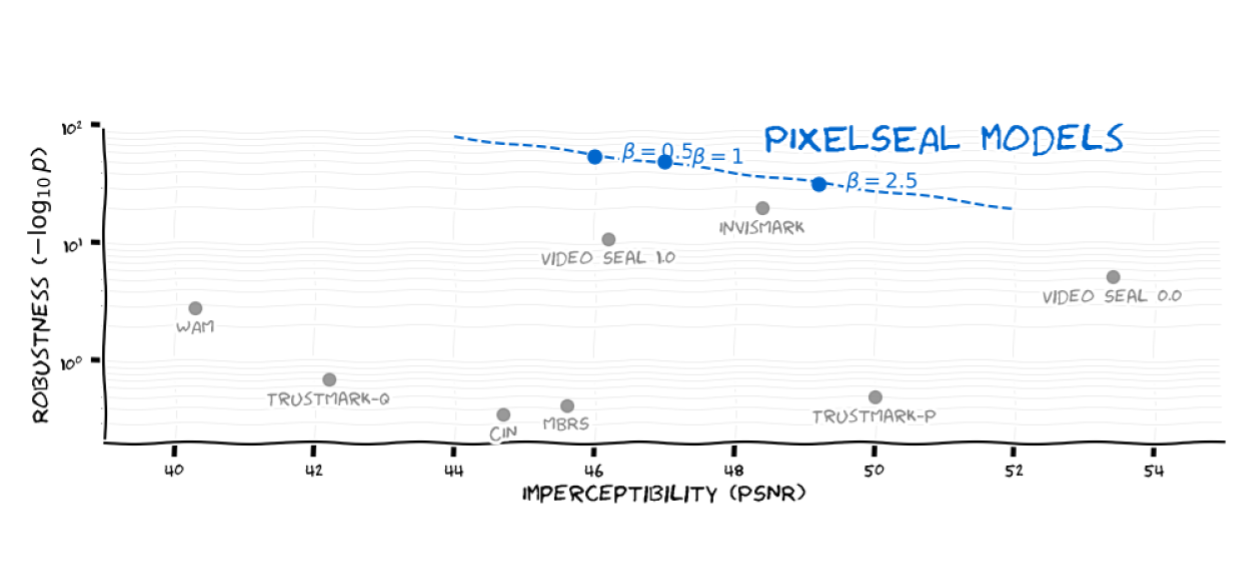 How Good is Post-Hoc Watermarking With Language Model Rephrasing? Pierre Fernandez, Tom Sander, Hady Elsahar, Hongyan Chang, Tomáš Souček, Valeriu Lacatusu, Tuan Tran, Sylvestre-Alvise Rebuffi. How Good is Post-Hoc Watermarking With Language Model Rephrasing?. arXiv preprint arXiv:2512.16904. Dec, 2025. HTML arXiv PDF Bib Pixel Seal: Adversarial-only Training for Invisible Image and Video Watermarking Tomáš Souček, Pierre Fernandez, Hady Elsahar, Sylvestre-Alvise Rebuffi, Valeriu Lacatusu, Tuan Tran, Tom Sander, Alexandre Mourachko. Pixel Seal: Adversarial-only Training for Invisible Image and Video Watermarking. arXiv preprint arXiv:2512.16874. Dec, 2025. HTML arXiv PDF Bib Geometric Image Synchronization with Deep Watermarking Pierre Fernandez, Tomáš Souček, Nikola Jovanović, Hady Elsahar, Sylvestre-Alvise Rebuffi, Valeriu Lacatusu, Tuan Tran, Alexandre Mourachko. Geometric Image Synchronization with Deep Watermarking. arXiv preprint arXiv:2509.15208. Sep, 2025. HTML arXiv Code PDF Bib Watermarking Autoregressive Image Generation Nikola Jovanović, Ismail Labiad, Tomáš Souček, Martin Vechev, Pierre Fernandez. Watermarking Autoregressive Image Generation. arXiv preprint arXiv:2506.16349. Jun, 2025. HTML arXiv Code PDF Bib Watermarking across Modalities for Content Tracing and Generative AI Pierre Fernandez. Watermarking across Modalities for Content Tracing and Generative AI. PhD Thesis. Jan, 2025. HTML arXiv Video Seal: Open and Efficient Video Watermarking Pierre Fernandez, Hady Elsahar, I. Zeki Yalniz, Alexandre Mourachko. Video Seal: Open and Efficient Video Watermarking. arXiv preprint arXiv:2412.09492. Dec, 2024. HTML arXiv Code PDF Bib Watermark Anything With Localized Messages Tom Sander, Pierre Fernandez, Alain Durmus, Teddy Furon, Matthijs Douze. Watermark Anything With Localized Messages. International Conference on Learning Representations (ICLR). Nov, 2024. HTML arXiv Code PDF Bib Watermarking Makes Language Models Radioactive Tom Sander, Pierre Fernandez, Alain Durmus, Matthijs Douze, Teddy Furon. Watermarking Makes Language Models Radioactive. Neural Information Processing Systems (NeurIPS). Feb, 2024. HTML arXiv PDF Bib Proactive Detection of Voice Cloning with Localized Watermarking Robin San Roman, Pierre Fernandez, Teddy Furon, Alexandre Défossez, Tuan Tran, Hady Elsahar. Proactive Detection of Voice Cloning with Localized Watermarking. ICML. Jan, 2024. HTML arXiv Code PDF Bib Seamless: Multilingual Expressive and Streaming Speech Translation Seamless Communication. Seamless: Multilingual Expressive and Streaming Speech Translation. CoRR 2023. Nov, 2023. HTML arXiv Code PDF Bib Functional Invariants to Watermark Large Transformers Pierre Fernandez, Guillaume Couairon, Teddy Furon, Matthijs Douze. Functional Invariants to Watermark Large Transformers. International Conference on Acoustics, Speech, and Signal Processing (ICASSP). Oct, 2023. HTML arXiv PDF Bib Three Bricks to Consolidate Watermarks for Large Language Models Pierre Fernandez, Antoine Chaffin, Karim Tit, Vivien Chappelier, Teddy Furon. Three Bricks to Consolidate Watermarks for Large Language Models. International Workshop on Information Forensics and Security (WIFS) - Best Student Paper award. Jul, 2023. HTML arXiv Code PDF Bib A Cookbook of Self-Supervised Learning Randall Balestriero, Mark Ibrahim, Vlad Sobal, Ari Morcos, Shashank Shekhar, Tom Goldstein, Florian Bordes, Adrien Bardes, Gregoire Mialon, Yuandong Tian, Avi Schwarzschild, Gordon Wilson, Jonas Geiping, Quentin Garrido, Pierre Fernandez, Amir Bar, Hamed Pirsiavash, Yann LeCun, Micah Goldblum. A Cookbook of Self-Supervised Learning. CoRR 2023. Apr, 2023. HTML arXiv PDF Bib DINOv2: Learning Robust Visual Features without Supervision Maxime Oquab, Timothée Darcet, Théo Moutakanni, Huy Vo, Marc Szafraniec, Vasil Khalidov, Pierre Fernandez, Daniel Haziza, Francisco Massa, Alaaeldin El-Nouby, Mahmoud Assran, Nicolas Ballas, Wojciech Galuba, Russell Howes, Po-Yao Huang, Shang-Wen Li, Ishan Misra, Michael Rabbat, Vasu Sharma, Gabriel Synnaeve, Hu Xu, Hervé Jegou, Julien Mairal, Patrick Labatut, Armand Joulin, Piotr Bojanowski. DINOv2: Learning Robust Visual Features without Supervision. Transactions on Machine Learning Research (TMLR). Apr, 2023. HTML arXiv Code PDF Bib The Stable Signature: Rooting Watermarks in Latent Diffusion Models Pierre Fernandez, Guillaume Couairon, Hervé Jégou, Matthijs Douze, Teddy Furon. The Stable Signature: Rooting Watermarks in Latent Diffusion Models. International Conference on Computer Vision (ICCV). Mar, 2023. HTML Publisher arXiv Code PDF Bib Active Image Indexing Pierre Fernandez, Matthijs Douze, Hervé Jégou, Teddy Furon. Active Image Indexing. International Conference on Learning Representations (ICLR). Oct, 2022. HTML Publisher arXiv Code PDF Bib Watermarking Images in Self-Supervised Latent Spaces Pierre Fernandez, Alexandre Sablayrolles, Teddy Furon, Hervé Jégou, Matthijs Douze. Watermarking Images in Self-Supervised Latent Spaces. International Conference on Acoustics, Speech, and Signal Processing (ICASSP). May, 2022. HTML Publisher arXiv Code PDF Bib Intelligence Artificielle et Propriété Intellectuelle Pierre Fernandez. Intelligence Artificielle et Propriété Intellectuelle. . Aug, 2021. HTML PDF Bib